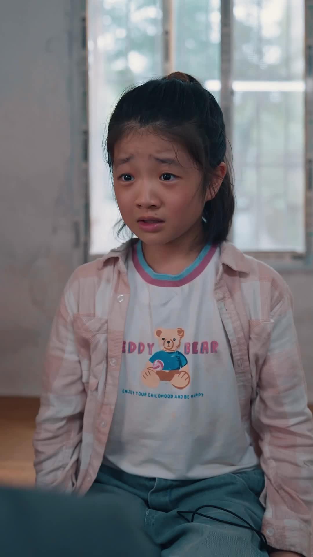 In the cramped, sun-bleached room where dust motes dance in the slanted light from the cracked window, a quiet storm is brewing—not with shouting or slamming doors, but with clenched fists, trembling lips, and the unbearable weight of unspoken truths. To Mom's Embrace isn’t just a title; it’s a desperate plea, a paradox, and ultimately, a trap. The first girl—let’s call her Xiao Mei—sits on the floor, knees drawn up, her pink-and-white plaid shirt slightly rumpled, the cartoon bear on her T-shirt holding a lollipop like a cruel joke. Her hair is tied in a high ponytail, strands escaping like frayed nerves. She doesn’t cry loudly; she cries in slow motion—tears welling, spilling, tracing paths through the faint smudges of dirt on her cheeks, her mouth opening just enough to let out a choked whisper that never quite forms words. Her hands twist a small white object—a tissue? A crumpled note?—until the paper fibers fray at the edges. Every micro-expression is calibrated: the furrowed brow not of anger, but of bewildered betrayal; the darting eyes that flit between the man in the grey suit—Li Wei—and the older man in camouflage pants, Uncle Zhang—like she’s trying to triangulate who holds the truth, and who holds the knife.