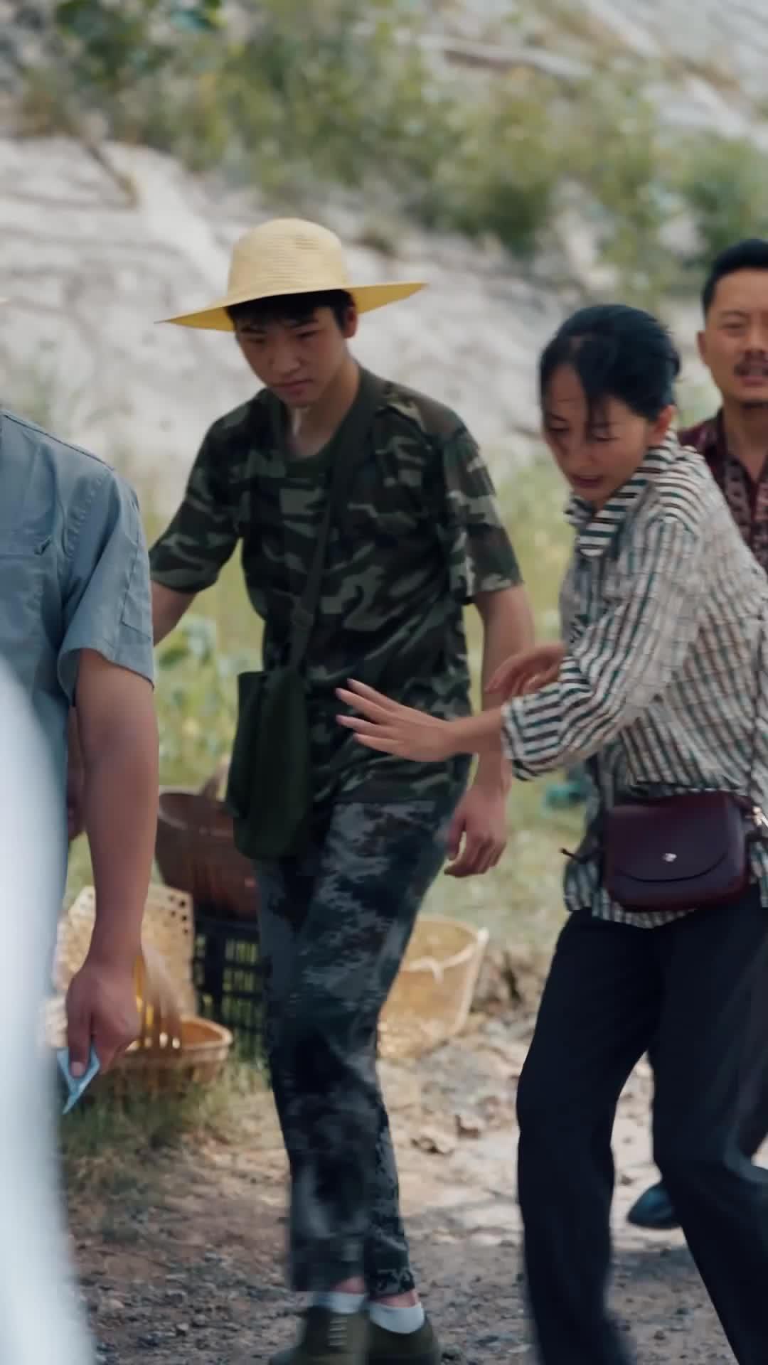 From the very first frame, *To Mom's Embrace* establishes itself not as a travelogue, but as a psychological excavation. The riverbank is not picturesque—it’s functional, worn, littered with discarded nets and half-empty baskets. People move with the rhythm of necessity, not leisure. The woman in the striped shirt—let’s call her Mei, though the film never names her outright—moves through this space like a current: swift, directed, slightly frayed at the edges. Her brown satchel hangs low on her hip, its strap worn thin, a detail that speaks of years of carrying more than just groceries. When she grabs the megaphone from Li Wei, her fingers tremble—not from weakness, but from the sheer effort of containing what she’s about to say. That tremor is the first crack in the facade. The audience feels it before the characters do.