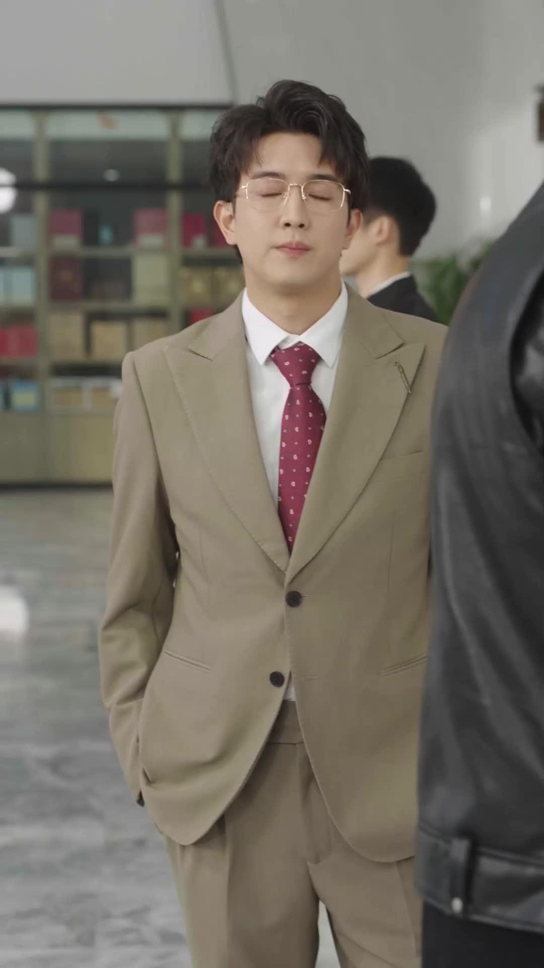In the sleek, marble-floored lobby of Da Xia Bank—a name that echoes with institutional weight and quiet ambition—the air hums not just with climate control but with unspoken hierarchies. The opening shot lingers on Lin Zeyu, impeccably dressed in a taupe suit, red patterned tie, and gold-rimmed glasses—his posture relaxed, hands buried in pockets, eyes half-lidded as if already bored by the world’s expectations. Yet his expression shifts subtly when he speaks: lips parting with practiced ease, eyebrows lifting just enough to suggest surprise without surrender. This is not the face of a man who’s arrived—he’s still auditioning for the role. And that’s where True Heir of the Trillionaire begins its slow-burn deception.