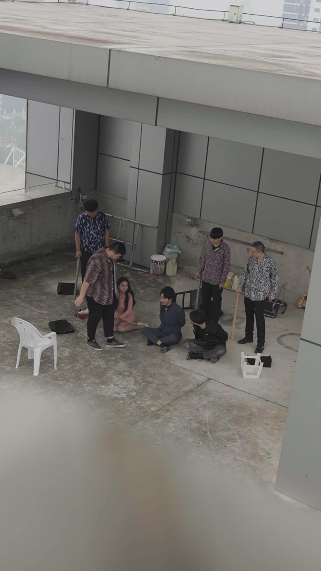 Kai, the quiet one in the black jacket, is the audience surrogate. He doesn’t have a grand monologue. He doesn’t need one. His arc is written in micro-expressions: the way he glances at Lin Xiao’s rope, then at his own wrists, then away—like he’s measuring the distance between complicity and courage. When he finally lifts his phone, it’s not a hero’s move. It’s a gambler’s. He’s not saving them; he’s betting on truth. And the most chilling part? He doesn’t look at the screen. He looks at *Chen Wei*. As if to say: I’m not recording you. I’m recording what you become when no one’s watching. That’s the core thesis of *True Heir of the Trillionaire*: identity isn’t inherited. It’s forged in the fire of choice—and sometimes, the fire is just a rooftop, a knife, and five people who suddenly realize they’ve been performing roles they never auditioned for.