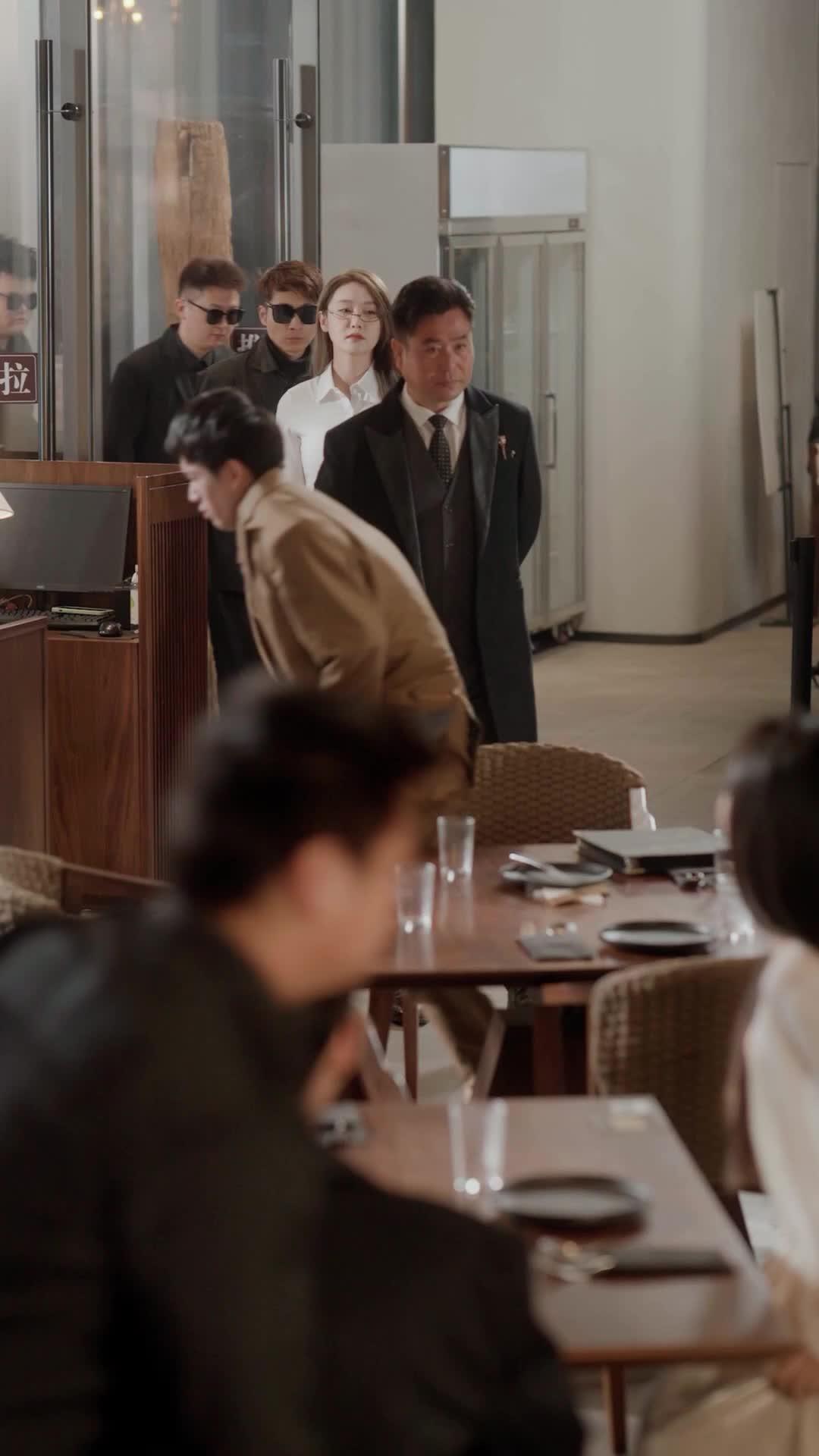 Let’s talk about the table. Not just any table—this one, dark walnut, scarred by years of use, bearing the faint ring marks of forgotten drinks and the ghost impressions of hands that pressed too hard during arguments. In True Heir of the Trillionaire, that table isn’t furniture. It’s a stage. A tribunal. A chessboard where every seat has meaning, every glass left half-full tells a story, and every silence is louder than a scream. The scene opens with movement—Chen Wei rushing forward, bowing slightly, his tan suit rumpled as if he’s been running from something unseen. Behind him, two men in black sunglasses stand like statues, their presence not threatening, but *inevitable*. They don’t speak. They don’t need to. Their stillness is the counterpoint to Chen Wei’s frantic energy, and that contrast alone sets the tone: this is a world where control is measured in milliseconds and micro-gestures.