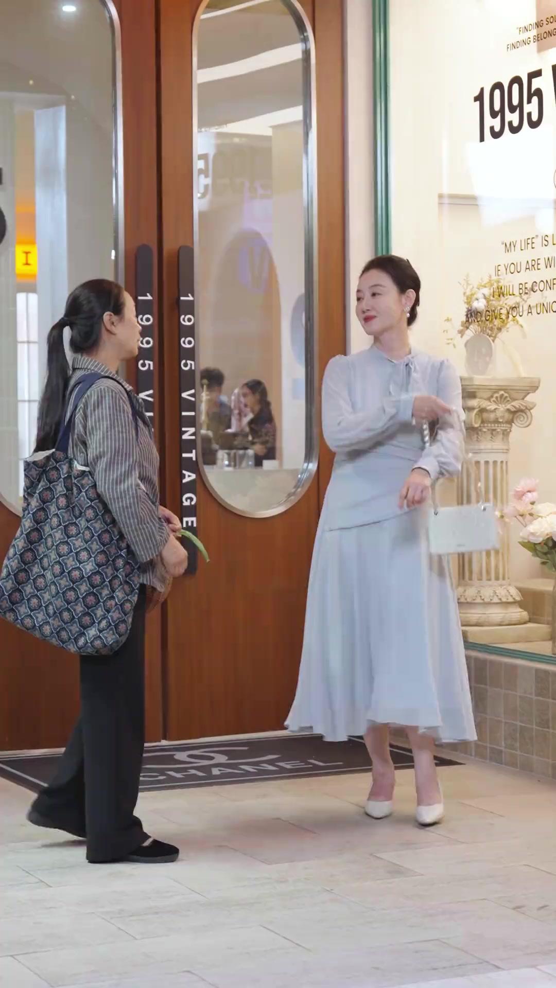 Let’s talk about the green onion. Not the flower arrangement. Not the chandelier shaped like antlers. Not even the Gucci gift bag with its riot of butterflies and peonies. The green onion—held loosely in Auntie Zhang’s hand like a forgotten grocery list—is the true north of *Twilight Dancing Queen*’s moral compass. In the first three minutes, while Lin Mei adjusts her pearl strap and checks her watch with the precision of a Swiss chronometer, Auntie Zhang stands rooted to the pavement, her striped blazer slightly too large, her tote bag patterned with geometric blooms that look like they were stitched by someone who loved symmetry more than fashion. She’s not waiting for Lin Mei. She’s waiting for permission. And when Lin Mei finally glances at her wrist, then offers a smile that doesn’t reach her eyes, Auntie Zhang exhales—not relief, but resignation. That green onion? It’s not produce. It’s proof. Proof that she came from somewhere real, where meals are planned around what’s in the market, not what’s trending on WeChat Moments. Lin Mei’s world runs on curation; Auntie Zhang’s runs on necessity. And in *Twilight Dancing Queen*, necessity is always the first casualty of elegance.