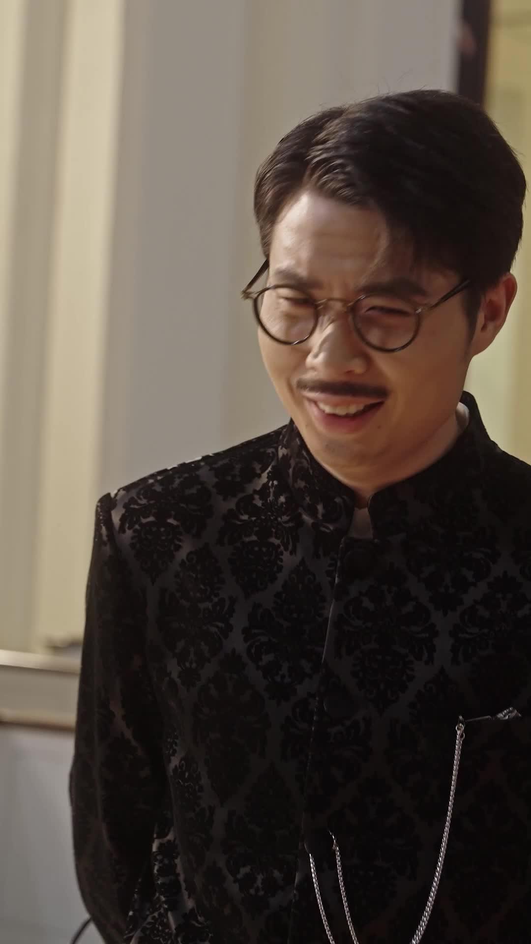 The contrast between him and Luo Ya—the man in the ornate black brocade jacket, round spectacles, and a mustache that seems drawn on with theatrical ink—is stark. Luo Ya doesn’t perform magic; he performs authority. His posture is rigid, his expressions exaggerated: wide-eyed disbelief, pursed-lip skepticism, a smirk that borders on condescension. When he gestures toward the young magician, it’s not with openness, but with the dismissive wave of a judge who’s already decided the verdict. His nameplate reads ‘Luo Ya’, and the script implies he’s a veteran, perhaps even a former champion, now relegated to the panel—not because he’s lost his skill, but because he’s lost his wonder. He watches the younger generation not with mentorship, but with territorial vigilance, as if magic were a finite resource, and every new trick was a theft from his legacy. Meanwhile, the elder figure—silver-haired, cane in hand, silk scarf tied in a flamboyant bow—stands apart, observing with the weary patience of someone who has seen too many cycles of arrogance and redemption. His silence speaks louder than any critique. He doesn’t clap, doesn’t frown; he simply *watches*, and in that watching, he becomes the moral compass of the scene—a living archive of what magic once meant before it became spectacle.