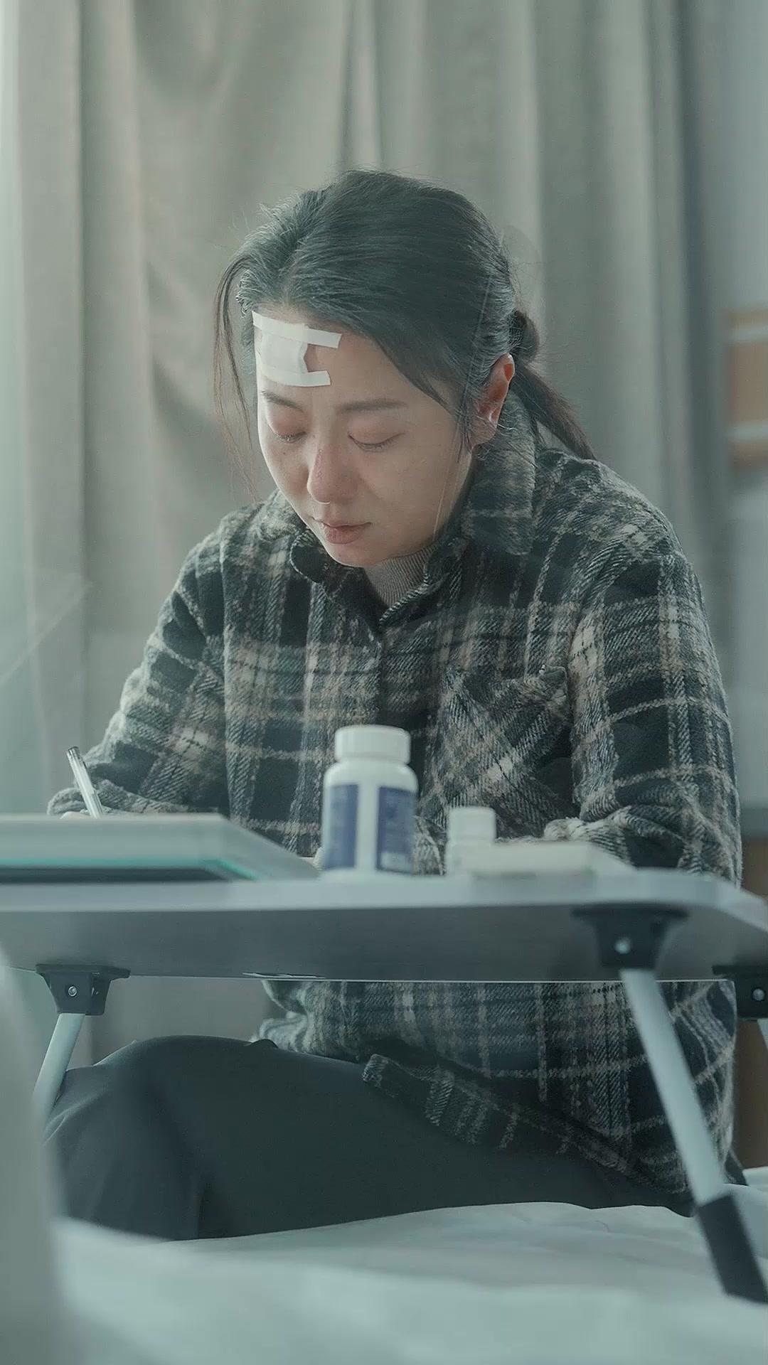 In the hushed, pale-lit room of what appears to be a hospital ward—soft curtains diffusing daylight like a mercy—the woman known only as Liu Yuexin sits propped on a narrow bed, her posture rigid yet fragile, her face bearing the quiet wreckage of grief. A white gauze bandage, taped in a crude H-shape across her forehead, tells of recent trauma; a faint red abrasion near her nose suggests she didn’t just fall—she was struck, or collapsed under weight far heavier than gravity. Her hands, though trembling, move with deliberate precision: she writes. Not in haste, not in rage, but in the slow, methodical rhythm of someone composing their final testament. The pen is cheap, translucent, its ink dark and unyielding—like truth itself. She writes in Chinese characters, each stroke deliberate, each line a confession, a plea, a farewell. The camera lingers on her fingers, knuckles slightly swollen, nails short and clean—not the hands of someone who’s given up, but of someone who’s chosen to act, even as her body betrays her. The paper is lined, ordinary, the kind found in any school supply store. Yet what she inscribes upon it carries the weight of a lifetime. When Duty and Love Clash isn’t just a title here—it’s the central tension that pulses beneath every frame. Liu Yuexin isn’t merely writing a letter; she’s negotiating with fate, trying to reconcile the unbearable contradiction between her role as a mother and the crushing reality that love, in its purest form, sometimes demands surrender. The first lines we glimpse read: ‘Dear Zhenzhen… I failed you.’ Not ‘I’m sorry,’ not ‘Forgive me’—but ‘I failed you.’ That verb—failed—is devastating. It implies responsibility, agency, guilt. She doesn’t blame circumstance; she blames herself. And yet, the very act of writing proves she hasn’t surrendered entirely. She’s still fighting—for clarity, for closure, for the chance that her words might reach someone who still believes in her. The scene cuts to her face again: tears well but don’t fall freely—they cling, suspended, like dew on a spiderweb, until one finally breaks free and traces a path through the dust on her cheek. Her breath hitches, not in sobs, but in the sharp, silent gasps of someone holding back a scream. This isn’t melodrama; it’s restraint. The film trusts the audience to feel the earthquake beneath the stillness. Later, she pauses, clutching her chest as if her heart has physically seized—a visceral manifestation of emotional collapse. Her eyes squeeze shut, brows furrowed not in pain alone, but in the agony of memory. Then, the photo. A framed image, slightly cracked down the center, shows three figures: Liu Yuexin, younger, radiant, flanked by two girls—Zhenzhen and another sister, both grinning, arms around each other, sunlight catching the lace on their dresses. The crack runs right through Liu Yuexin’s face, splitting her smile in two. Symbolism? Yes—but not heavy-handed. It’s the visual echo of her fractured psyche. She touches the glass gently, reverently, as if trying to mend it with touch alone. When Duty and Love Clash reveals itself most powerfully in this gesture: she doesn’t throw the frame, doesn’t curse the past. She caresses it. Because love, even when broken, remains sacred. The envelope she prepares is plain, beige, stamped with red squares—standard issue for official correspondence in China. But the handwriting on the front—‘To Zhenzhen, From Mom’—is shaky, uneven, as if written in the dark, by candlelight, or with tears blurring the ink. She folds the letter carefully, tucks it inside, then presses the flap shut with her thumb, sealing not just paper, but possibility. And then—the pills. A white bottle, blue label, generic packaging. She unscrews it with numb fingers, pours a handful into her palm: small, round, white tablets, innocuous as aspirin. But context transforms them. They are not medicine. They are punctuation. Finality. She brings them to her lips, swallows without water, her throat working like a machine obeying a command it no longer questions. The camera holds on her face as she leans back, eyes closed, head tilted upward—not in prayer, but in release. Her breathing slows. Her expression softens, almost peaceful. This is not suicide as rebellion; it’s suicide as resolution. A quiet exit from a script she can no longer bear to perform. The bottle rolls off the tray table, clattering onto the floor, lying on its side like a fallen soldier. No one rushes in. No alarm sounds. The silence is absolute. And then—the final shot: Liu Yuexin lies flat on the bed, hands folded over her chest, clutching the empty photo frame now turned face-down, its black backing pressed against her ribs. The envelopes rest beside her, untouched, as if waiting for a delivery that will never come. The hospital curtain stirs faintly in an unseen breeze. A green sign on the wall reads, in Chinese: ‘If you need help, please call immediately.’ Irony so quiet it aches. When Duty and Love Clash doesn’t end with a bang, but with the sound of a single breath fading into stillness. It’s a film about the unbearable lightness of letting go—and how sometimes, the most radical act of love is choosing to stop carrying the world. Liu Yuexin’s tragedy isn’t that she failed; it’s that she loved too well, too fiercely, and the system—medical, legal, emotional—had no space for that kind of devotion. Her letter wasn’t meant to explain; it was meant to absolve. To say, ‘I did everything I could. Forgive me for not being enough.’ And in that forgiveness, she found her only peace. The brilliance of the direction lies in what’s omitted: no flashbacks, no villain monologues, no last-minute rescues. Just a woman, a pen, a photo, and the unbearable weight of being both mother and martyr. When Duty and Love Clash forces us to ask: What would we do, if love demanded we vanish? Would 