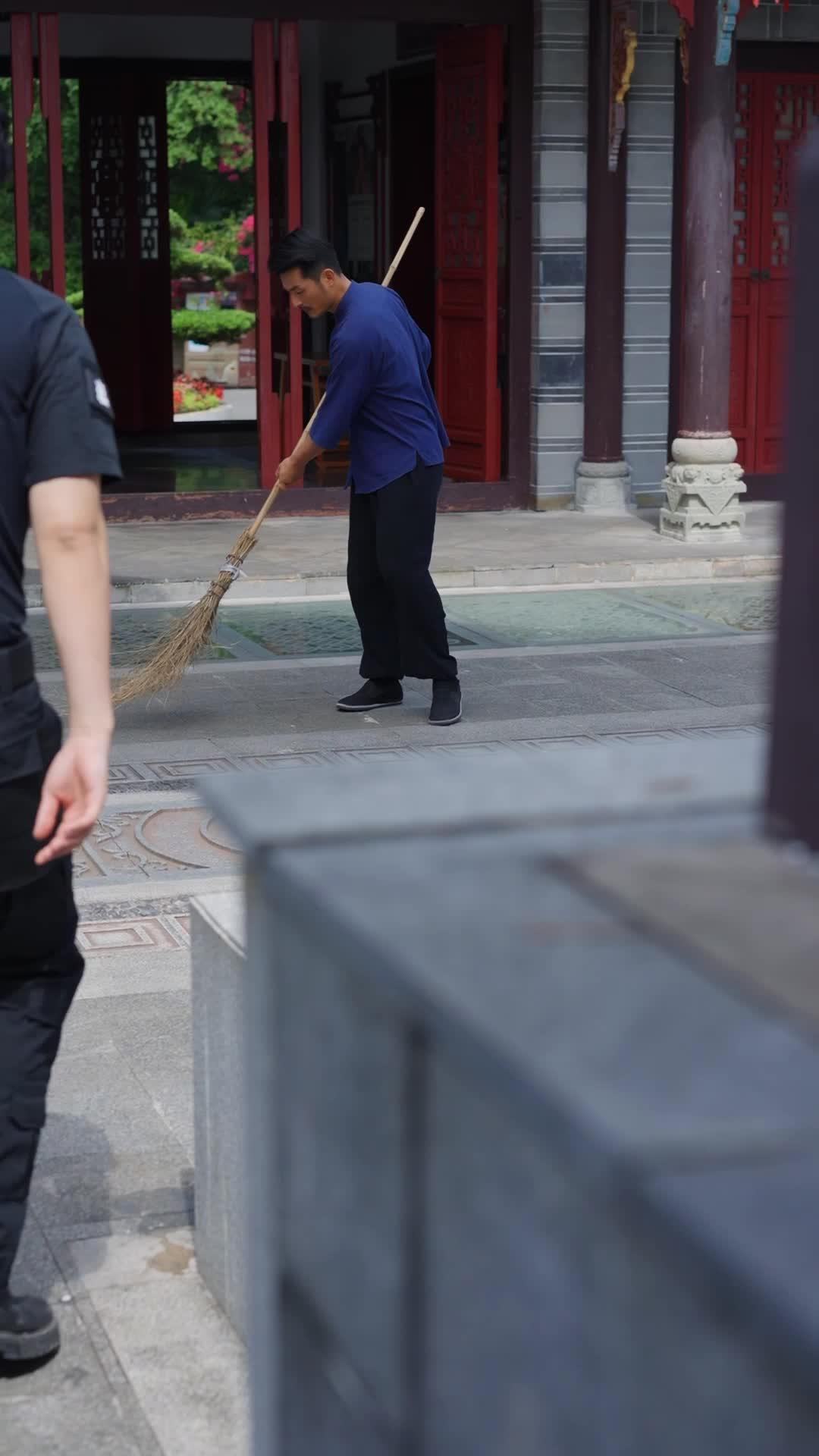 *Always A Father* nails the 'ordinary man, extraordinary moment' trope. The guard’s transformation—from skeptical to stunned to crawling—is absurdly satisfying. The red doors, stone tiles, and that bamboo broom? Every detail whispers tradition. And yet… magic still sneaks in. 😳 Who saw *that* coming?