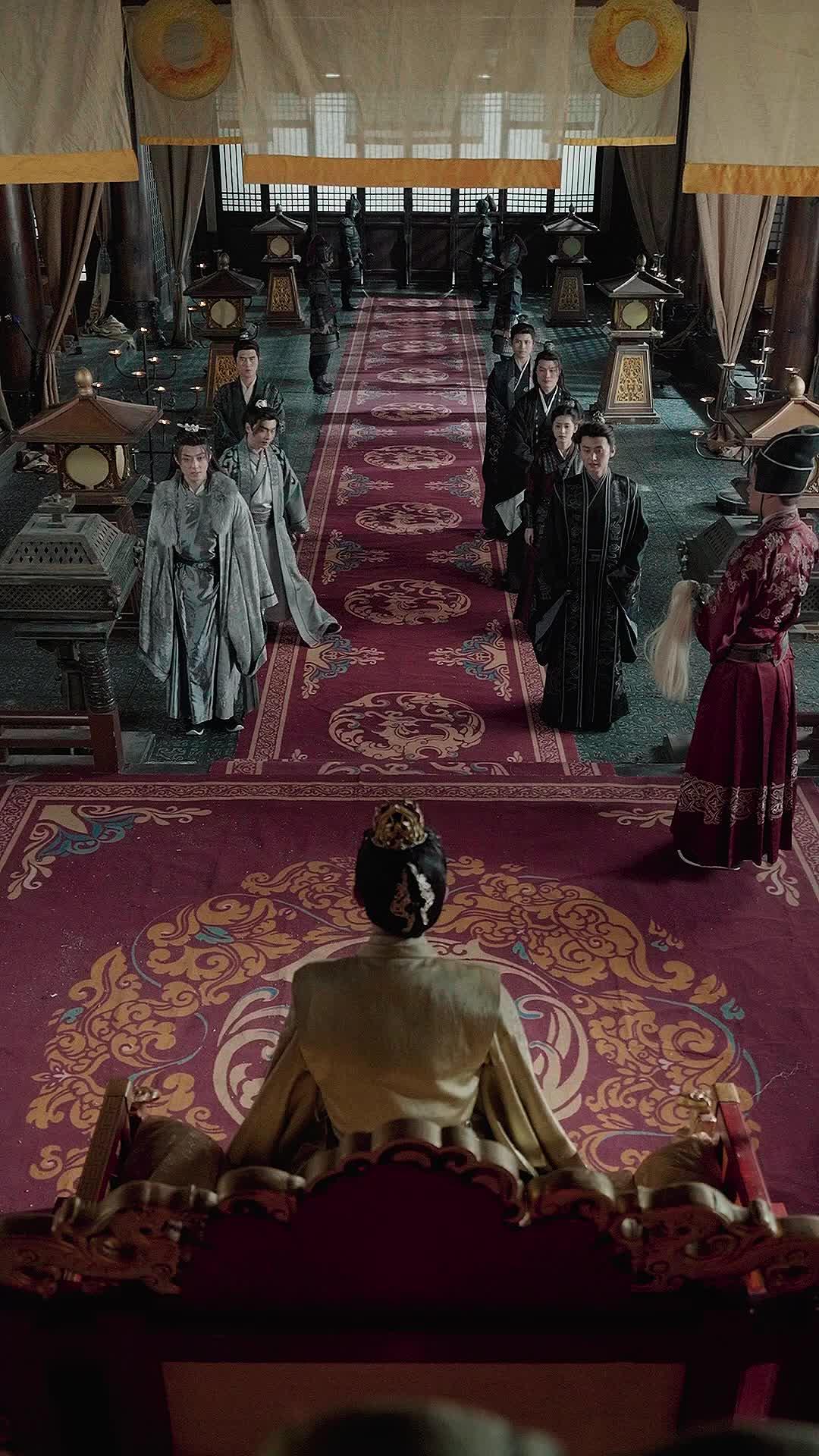 Love how the fur-trimmed robe guy keeps smirking while others sweat—his calm is *dangerous*. Meanwhile, the black-robed one’s side-eye could freeze wine. Even the emperor’s golden robe feels heavy with unsaid words. That final spark effect around the female warrior? Chef’s kiss. They’re not just plotting—they’re *performing* power. Short, sharp, and utterly addictive. ⚔️✨