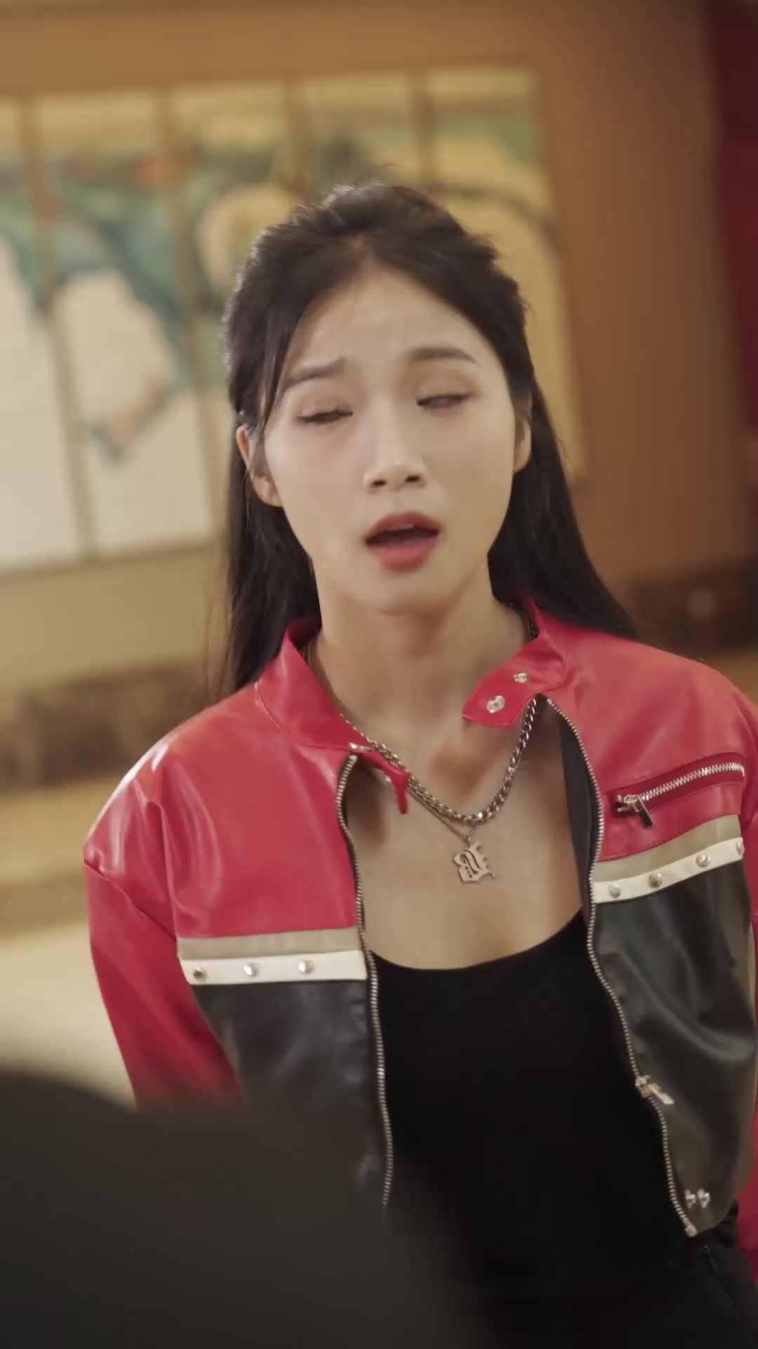 That staircase in Clash of Light and Shadow isn’t just set design—it’s a psychological runway. Every time she steps forward, the camera lingers on her ponytail, her zippers, her *silence*. Meanwhile, the vest-clad observer clutches her cheek like she’s witnessed a crime. Is it shock? Guilt? Or just the weight of being caught between old world grace and new world grit? Pure visual storytelling. 🎭✨