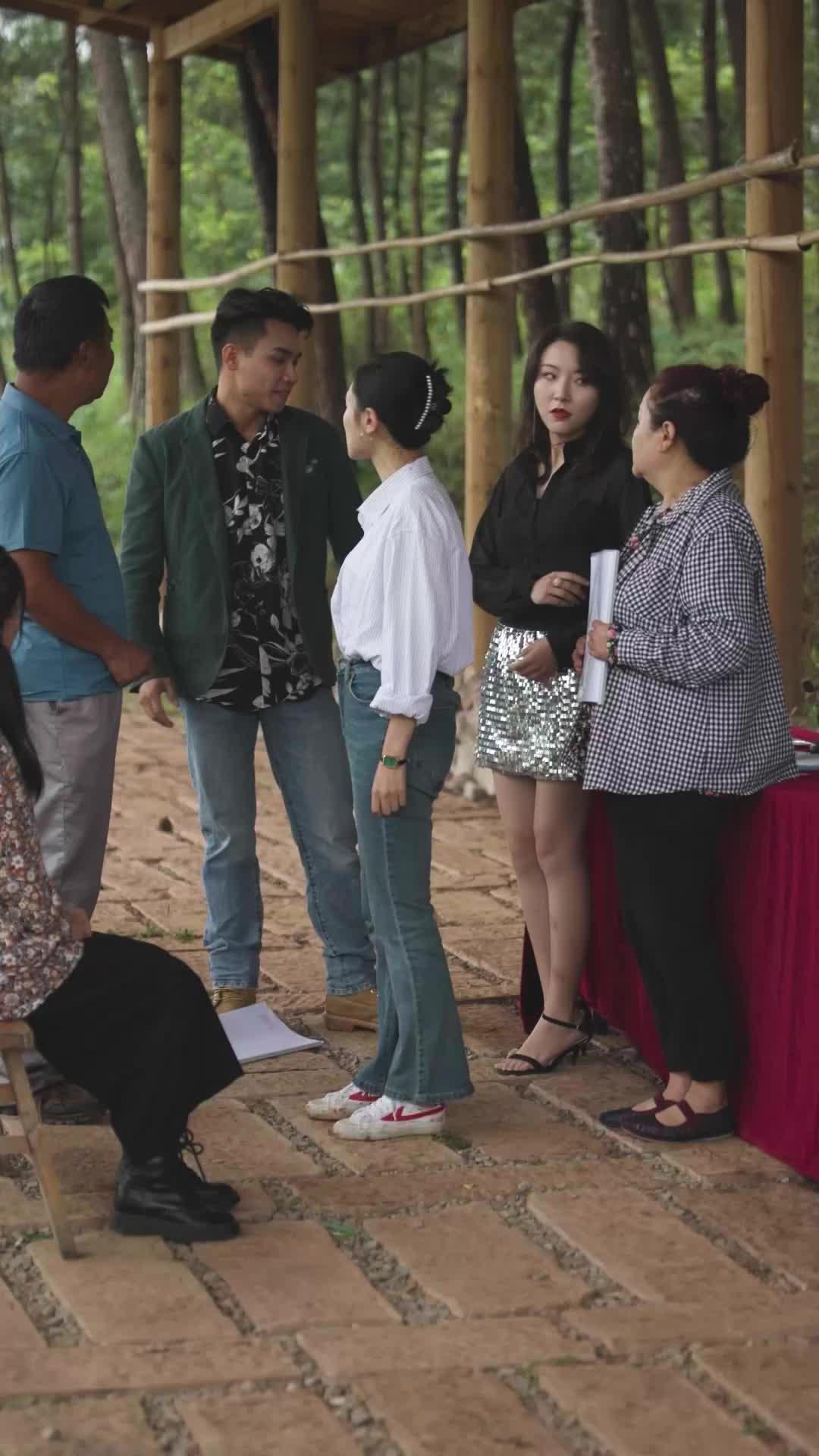 La escena donde el hombre del saco verde susurra al oído de ella… ¡puro veneno emocional! En *La verdadera y falsa presidenta*, cada pliegue de la camisa a cuadros de la mujer mayor revela años de secretos. El ambiente boscoso no es fondo: es cómplice. 🌲📜 ¿Quién firma el papel? Nadie lo sabe… pero todos lo sienten.