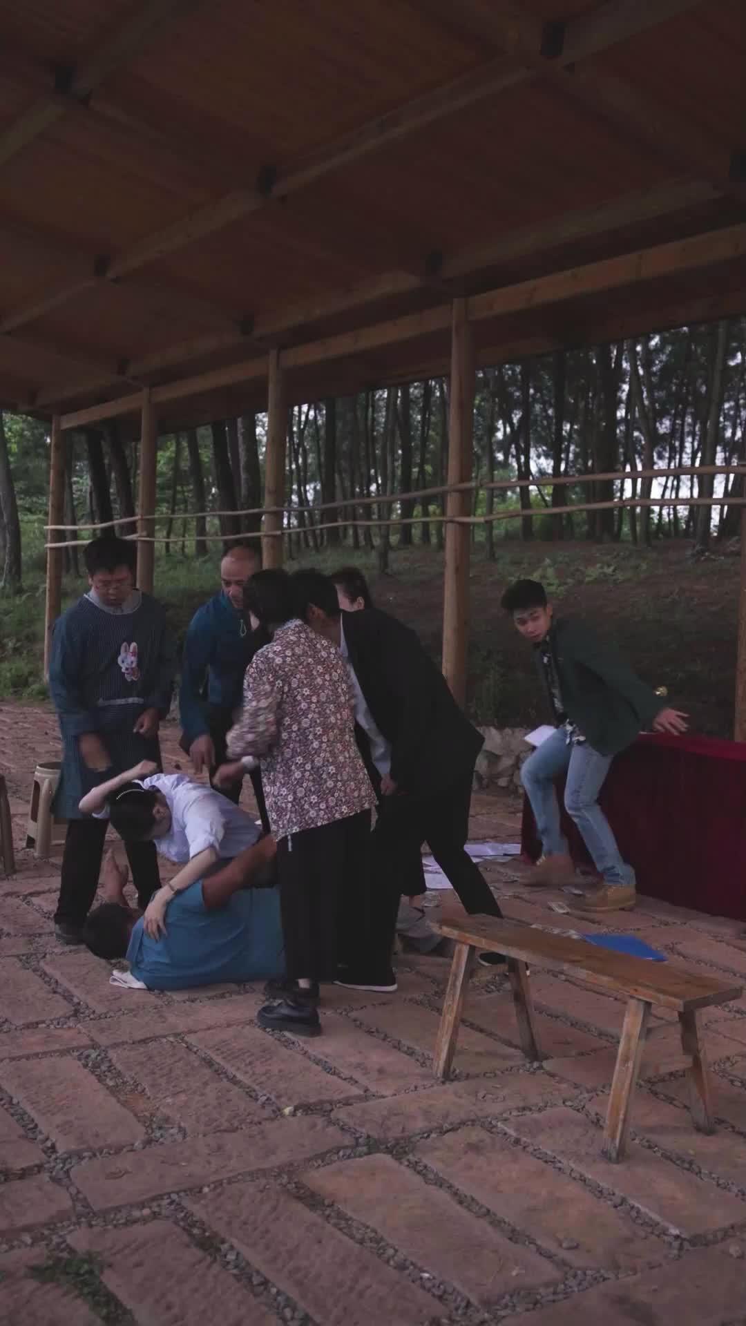 La tensión estalla cuando el hombre de azul cae y todos corren —¿pero quién lo empujó? La mujer con camisa blanca observa con los brazos cruzados, fría como el acero. En *La verdadera y falsa presidenta*, cada gesto es una pistola cargada 🎯