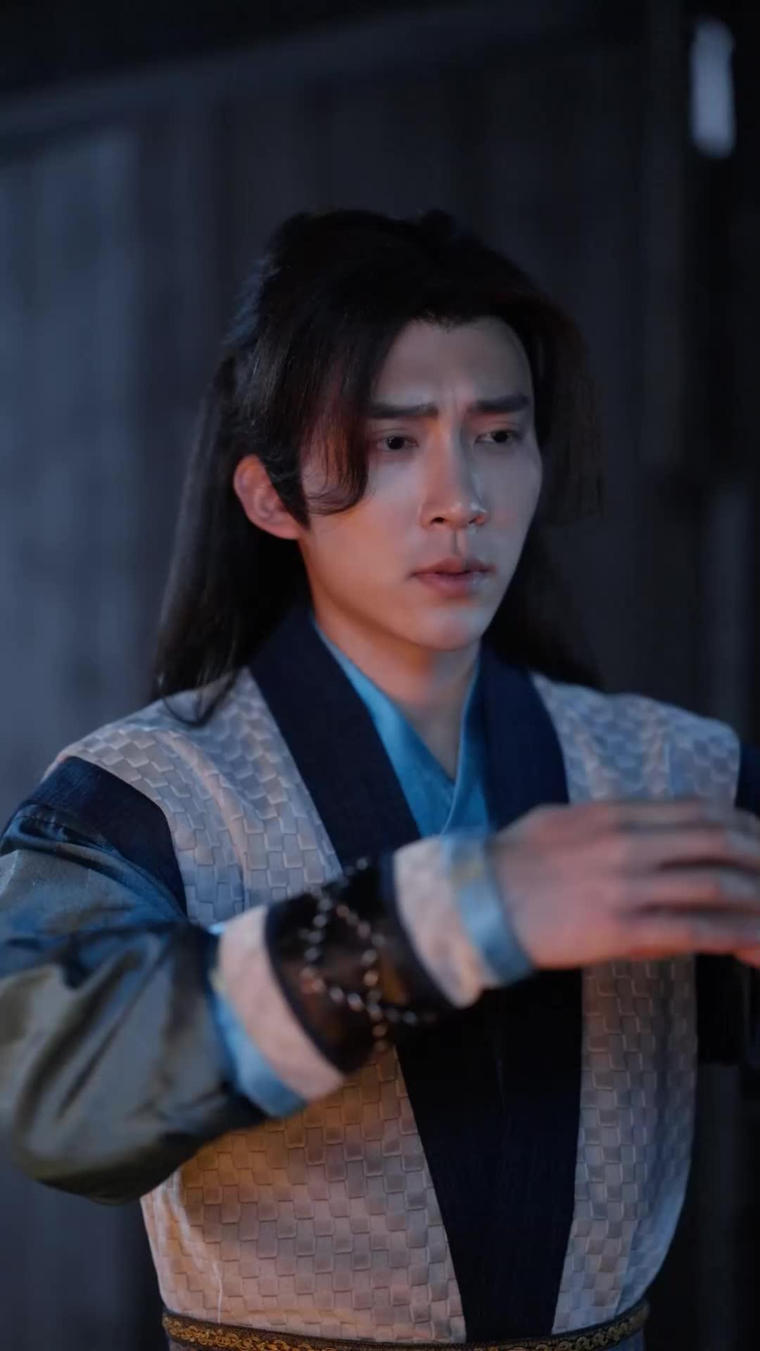 어두운 방 안, 희미한 촛불이 탁자 위에서 흔들리고 있다. 그 빛은 두 인물의 얼굴을 비추며, 마치 시간을 멈춘 듯한 정적 속에서 미세한 감정의 파동을 포착한다. 남자, 이서준은 긴 머리를 뒤로 넘긴 채, 청색 내의에 회색 겉옷을 걸친 채 서 있다. 그의 옷은 질감이 뚜렷한 직조 무늬로, 전통적이면서도 약간의 현대적 해석이 느껴진다. 그러나 그의 눈빛은 전혀 현대적이지 않다. 불안, 의심, 그리고 어딘가에 억눌린 애정이 섞인 복합적인 감정이 그의 눈가를 흐르고 있다. 특히 그가 손을 들어 올릴 때, 팔목에 감긴 검은 실과 은색 장식이 반짝이는 순간—그건 단순한 액세서리가 아니다. 그것은 어떤 맹세나 제약을 상징하는 듯하다. 그의 손짓은 유연하면서도 강박적이다. 마치 무언가를 부정하려는 듯, 아니면 무언가를 확인하려는 듯, 반복되는 동작 속에 숨겨진 심리적 갈등이 고스란히 드러난다.