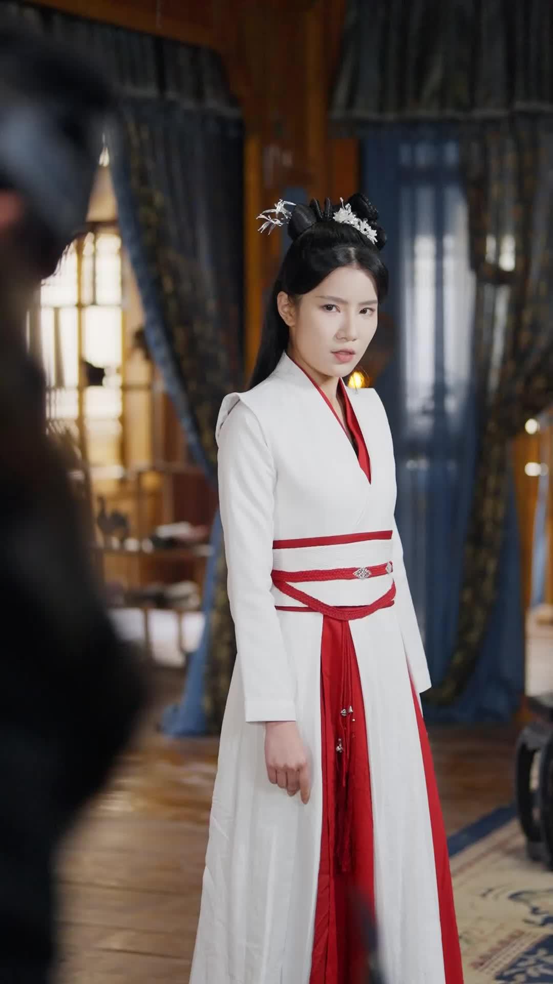 장무열의 행동은 더욱 흥미롭다. 그는 유수연이 병을 들자, 갑자기 웃음을 터뜨린다. 하지만 그 웃음은 가짜다. 눈가에 주름이 잡히긴 했으나, 눈동자는 차가운 그대로다. 그는 병을 건낸 후, 손을 뒤로 돌려 허리춤의 무기를 만지작거린다. 이는 그가 여전히 경계하고 있음을 보여주는 미세한 신호다. 그가 유수연을 완전히 믿는다면, 굳이 무기를 만질 필요가 없다. 그는 그녀가 병을 열고, 액체를 마실지, 아니면 돌려줄지—그 선택의 순간을 기다리고 있는 것이다. 이 장면에서 가장 강렬한 대비는 색채에 있다. 유수연의 흰 옷과 붉은 끈은 순수함과 희생, 그리고 피의 약속을 동시에 상징한다. 반면 장무열의 검은 옷과 모피는 권위, 위협, 그리고 오랜 세월의 고독을 나타낸다. 두 사람이 마주 선 공간은 전형적인 고전 중국풍 방으로, 나무 구조와 파란 커튼, 그리고 바닥의 화려한 카펫이 조화를 이룬다. 그러나 이 아름다운 배경은 오히려 그들의 긴장감을 더 부각시킨다. 마치 무대 위의 배우들처럼, 이들은 모두가 지켜보는 가운데, 자신의 운명을 결정해야 하는 순간에 서 있다.