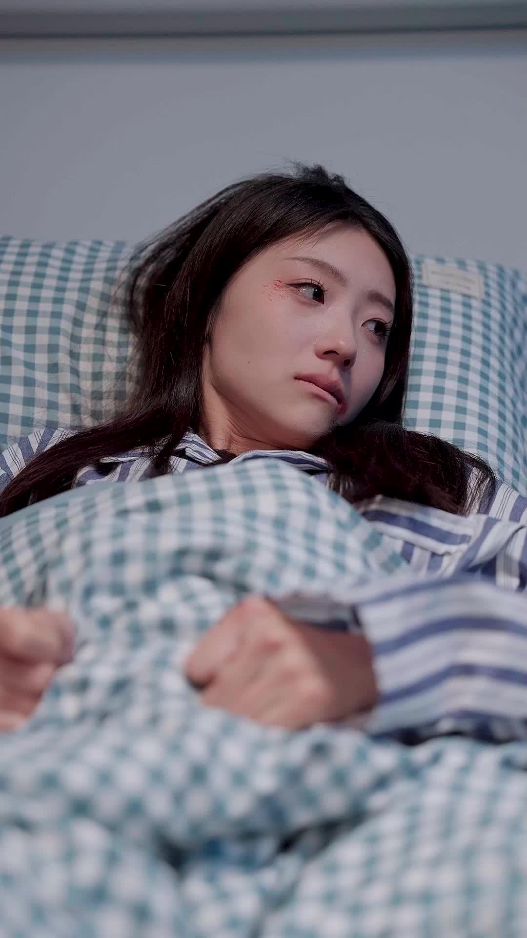 這場戲,表面是醫院病房,實則是一場精心編排的情感核爆現場。林晚(飾演者:陳語嫣)躺在那張藍白格紋被單覆蓋的病床上,左眼下方一道鮮紅擦傷還未結痂,像一滴凝固的血淚,靜靜掛在她蒼白的臉頰上——這不是意外,是某種「被遺忘的證據」。她穿著條紋病號服,手指緊攥著被角,指節泛白,彷彿那薄薄一層棉布是她唯一能抓住的浮木。而坐在她床邊的,是母親蘇婉(飾演者:吳雅琳),一身藕紫色針織開衫配白色高領內搭,髮髻低挽,素淨得近乎謙卑,可眼神裡卻藏著千鈇之力。兩人之間沒有對話,只有呼吸聲、指尖摩挲被面的窸窣聲,以及窗外透進來的冷調藍光——那光線像手術燈,照得人無處遁形。