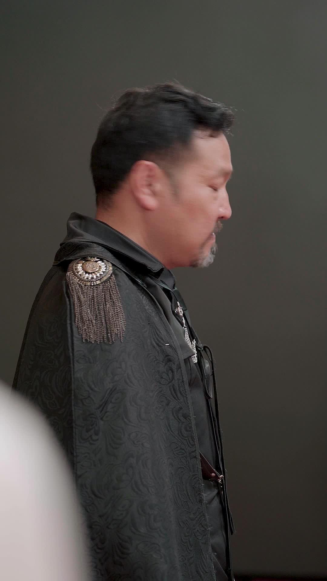 而被挾持的年輕女子,她的悲劇性不在脆弱,而在清醒。她穿的黑色旗袍領口有蝴蝶結飾,髮間白玉蘭簪在01:39特寫中清晰可見——玉蘭象徵「報恩」,白則代表「純潔」,可她此刻正被污名化地「獻祭」。當淚水滑落(01:48),她沒有閉眼,反而睜大瞳孔凝視黑袍男的下顎線條,彷彿在記住這個人的骨骼結構。這不是求生本能,是「將敵人刻入記憶」的戰士思維。與鳳行戰神媽媽不裝了,這句台詞在此刻有了全新解讀:當林婉兒終於在01:28微微抬頭,目光穿透人群直刺黑袍男心臟時,她卸下的不是偽裝,是「被賦予的聖潔人設」。她不再做那個端坐神壇的白紗女王,而是準備踏入泥濘的執劍者。
