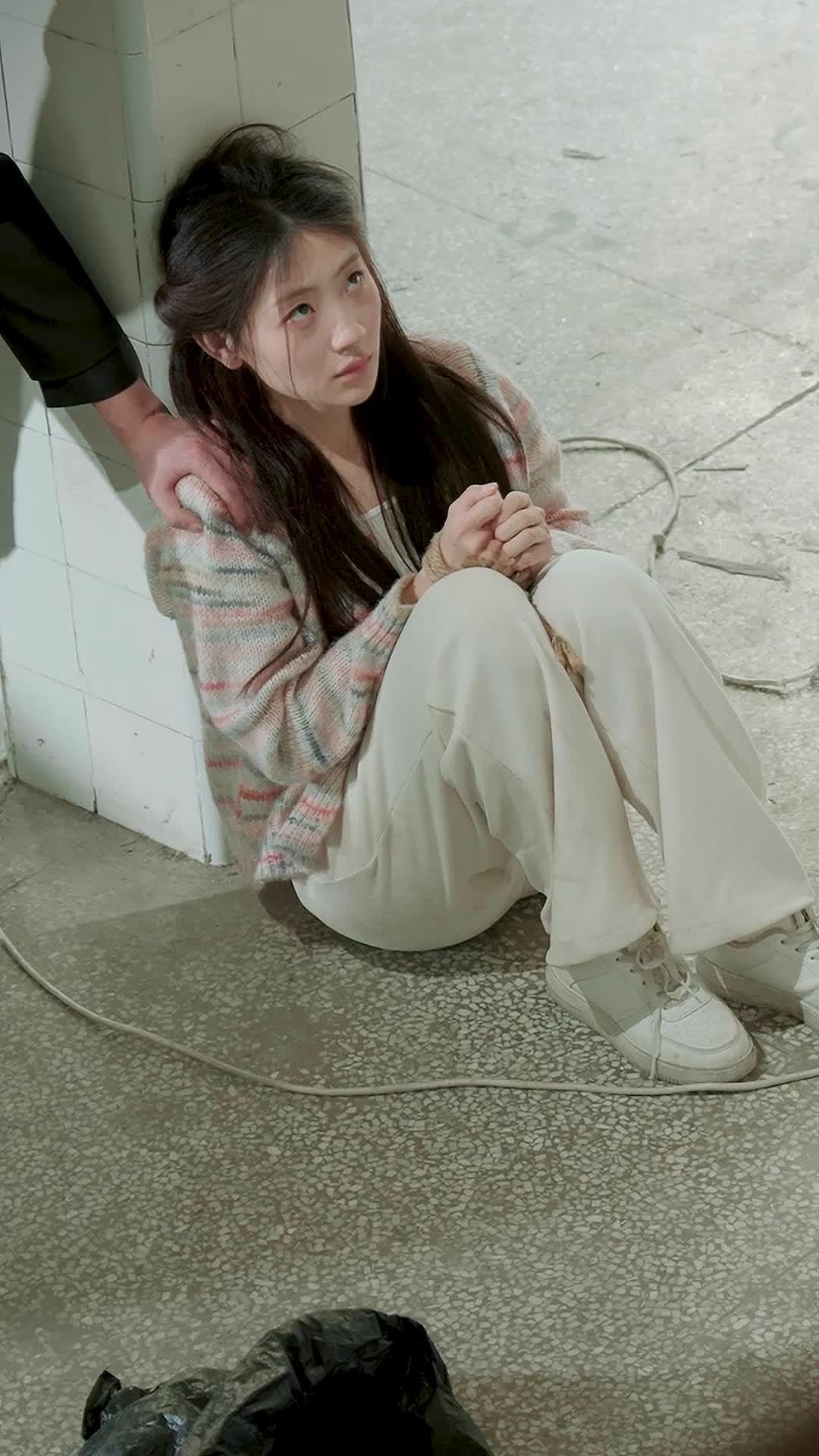 你有沒有試過,在極度恐懼時,反而笑出來?不是苦笑,是那種喉嚨發緊、眼眶灼熱、嘴角卻不受控地上揚的生理悖論。這段影像裡的女主角,就把這種狀態演到了令人窒息的程度。她坐在冰冷水泥地上,雙手被粗麻繩纏繞三圈,指節因血液迴流而泛青,可當林燁把槍抵上她太陽穴的瞬間,她沒閉眼,沒顫抖,甚至——眨了眨眼,像在確認這是不是一場夢。那滴懸在睫毛邊緣的淚,遲遲不落,彷彿在等待某個指令。而林燁,那個穿白西裝的男人,竟在此刻俯身,用拇指抹去那滴淚,動作輕柔得像擦拭古董瓷器,嘴裡還哼著不成調的歌。這畫面荒謬得令人毛骨悚然,卻又精準得像一劑毒藥,慢慢滲入觀眾的脊椎。