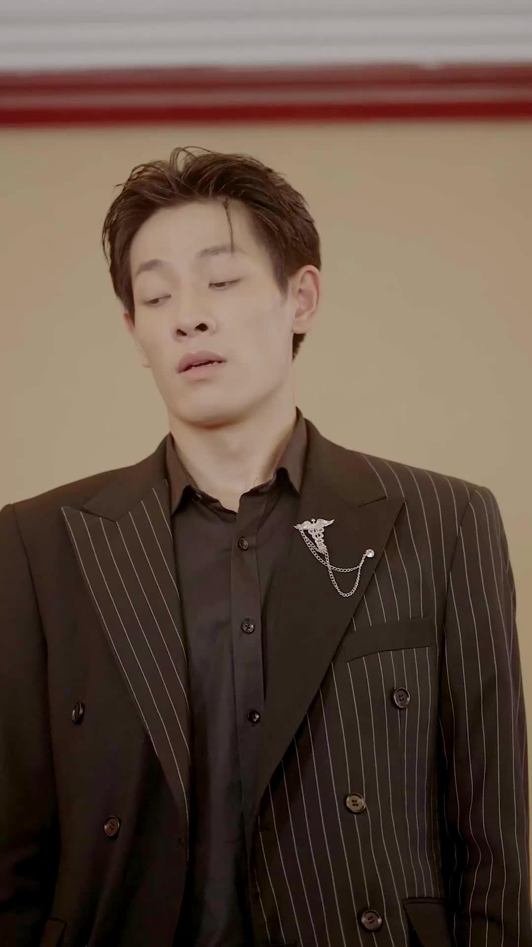 這段影像最令人窒息的,不是打鬥,不是對峙,而是那種「所有人都知道規則,卻只有主角裝作不知」的荒謬感。林燁站在紅絨高台之上,身後金椅輝煌奪目,腳下地毯波浪紋理如凝固的潮汐——他像一尊被供奉的神像,卻眼神空茫,彷彿靈魂早已抽離肉身。他西裝剪裁精準到毫米級,卻在左袖口內側縫有一道細微裂痕,僅在抬手時才若隱若現。這不是瑕疵,是刻意留下的「破綻」,如同他整個人生:表面完美無瑕,內裡早已千瘡百孔。