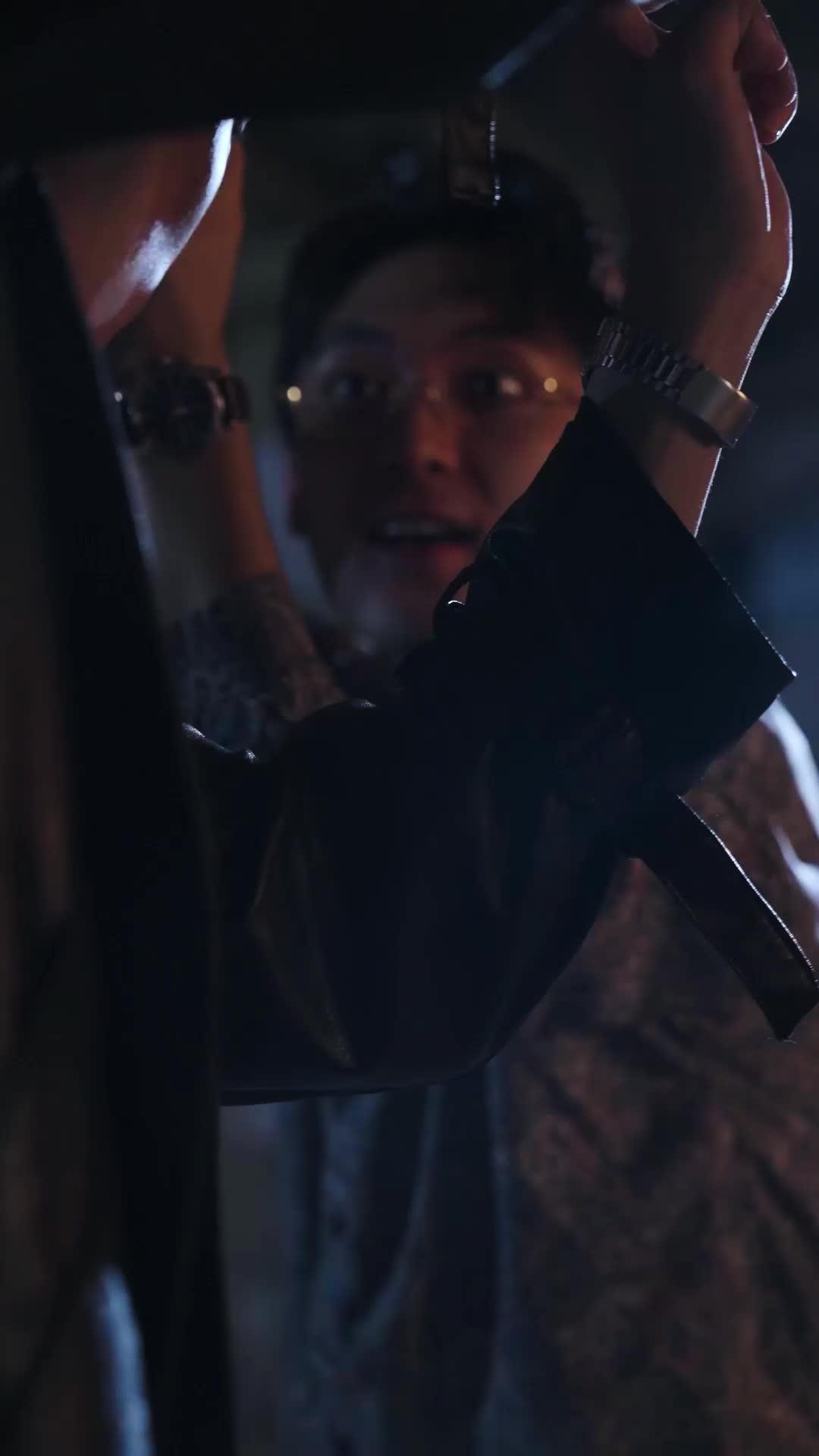 這場戲,像一盞忽明忽暗的煤油燈,在廢棄工廠的水泥牆上投下扭曲的影子——不是動作片,卻比動作片更讓人喘不過氣;不是懸疑劇,卻每幀都藏著未說出口的伏筆。主角林燁(穿黑皮衣者)站在中央,手裡那把細長短劍泛著冷光,像他此刻的眼神:壓抑、克制、但隨時會爆發。而對面那個戴金絲眼鏡、穿花紋襯衫的男人陳敘白,嘴角始終掛著一絲笑,那笑不是輕蔑,是某種……早已看透的疲憊。兩人之間的張力,不是靠台詞堆砌,而是靠呼吸節奏、腳步距離、甚至手腕轉動的角度一點點累積起來的。