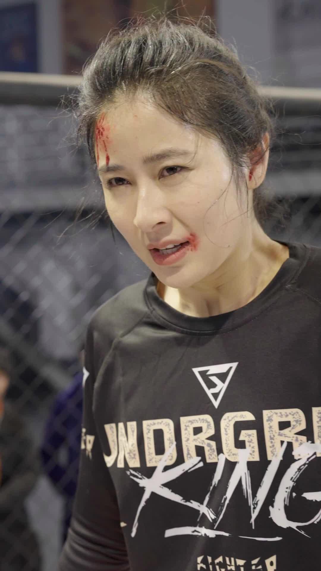 Let’s talk about the blood. Not the theatrical kind—the kind that pools in the corner of a mouth and drips slowly, deliberately, like a timer counting down. In *Brave Fighting Mother*, blood isn’t decoration. It’s punctuation. Every drop tells a sentence. The woman—let’s call her Lin, because that’s the name stitched subtly into the inner collar of her rash guard—doesn’t bleed for effect. She bleeds because she chose to stand in the line of fire, again and again, until the fire learned her name. Her first close-up shows her mid-breath, lips parted, a thin line of crimson tracing the curve of her lower lip. Her eyes, though—those are dry. Clear. Focused. That’s the dissonance that hooks you: her body is marked, but her spirit is untouched. She’s not broken. She’s sharpened. The camera holds on her for three full seconds, no cut, no music swell—just the hum of the gym fans and the distant murmur of spectators. In that silence, you realize: this isn’t a fight scene. It’s a confession.