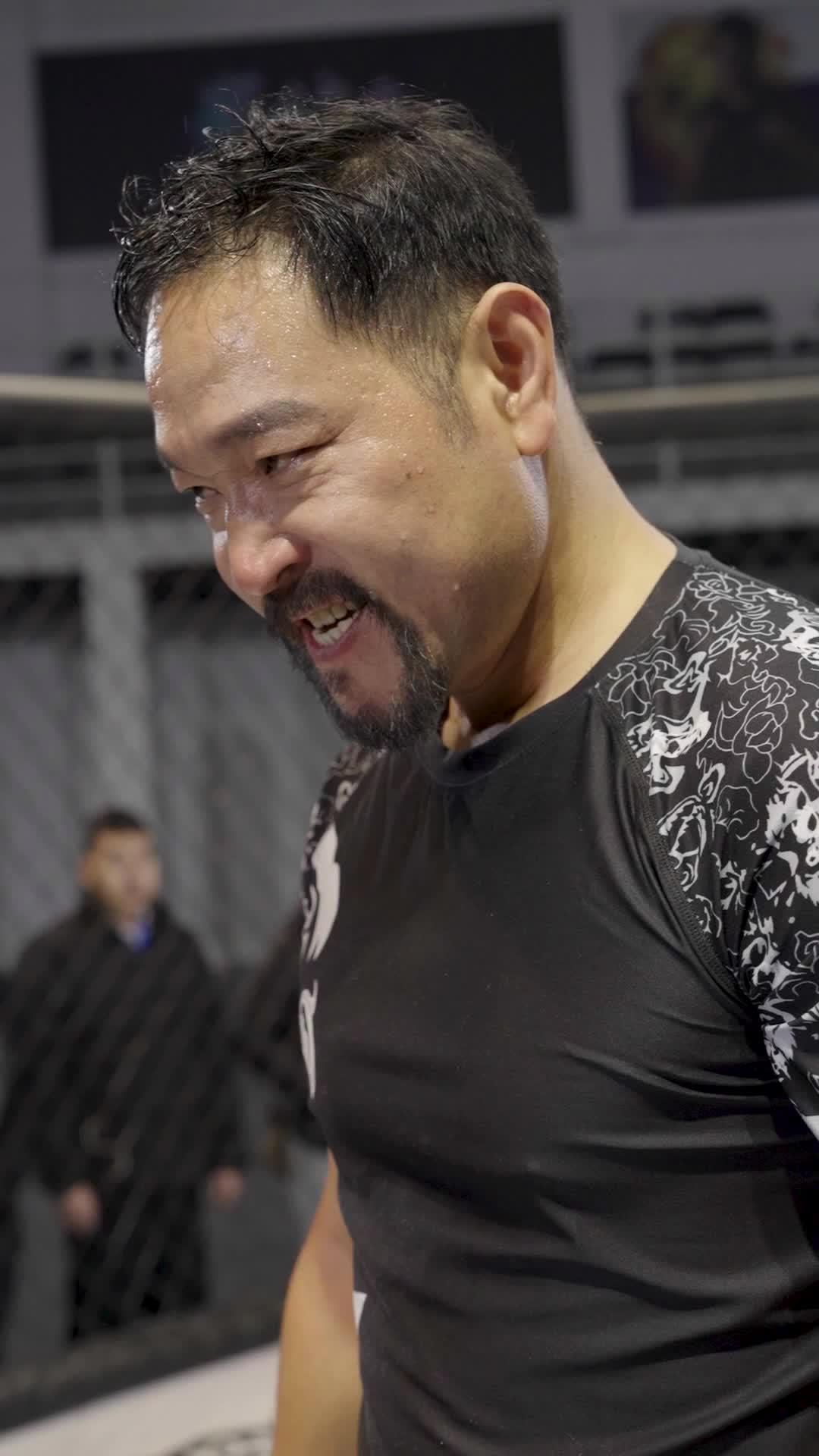The environment of the venue is crucial here. This isn’t a packed arena with roaring fans; it’s an intimate gymnasium, the kind where the smell of rubber mats and antiseptic hangs thick in the air, where punching bags sway gently in the background like silent mourners. The banners lining the cage—Bad Boy, Tapout, Venum—are ironic decorations. They scream ‘combat,’ but the real battle is happening in the periphery: in the way Master Feng’s fingers tighten around his prayer beads at 0:43, in the way Yao Na’s breath hitches when Lin Mei stumbles at 0:50, in the way Li Jun’s voice drops an octave when he announces, ‘Round three… and the pace has shifted.’ He doesn’t say *she’s fading*. He says *the pace has shifted*—a diplomat’s phrasing for a collapse no one wants to name.