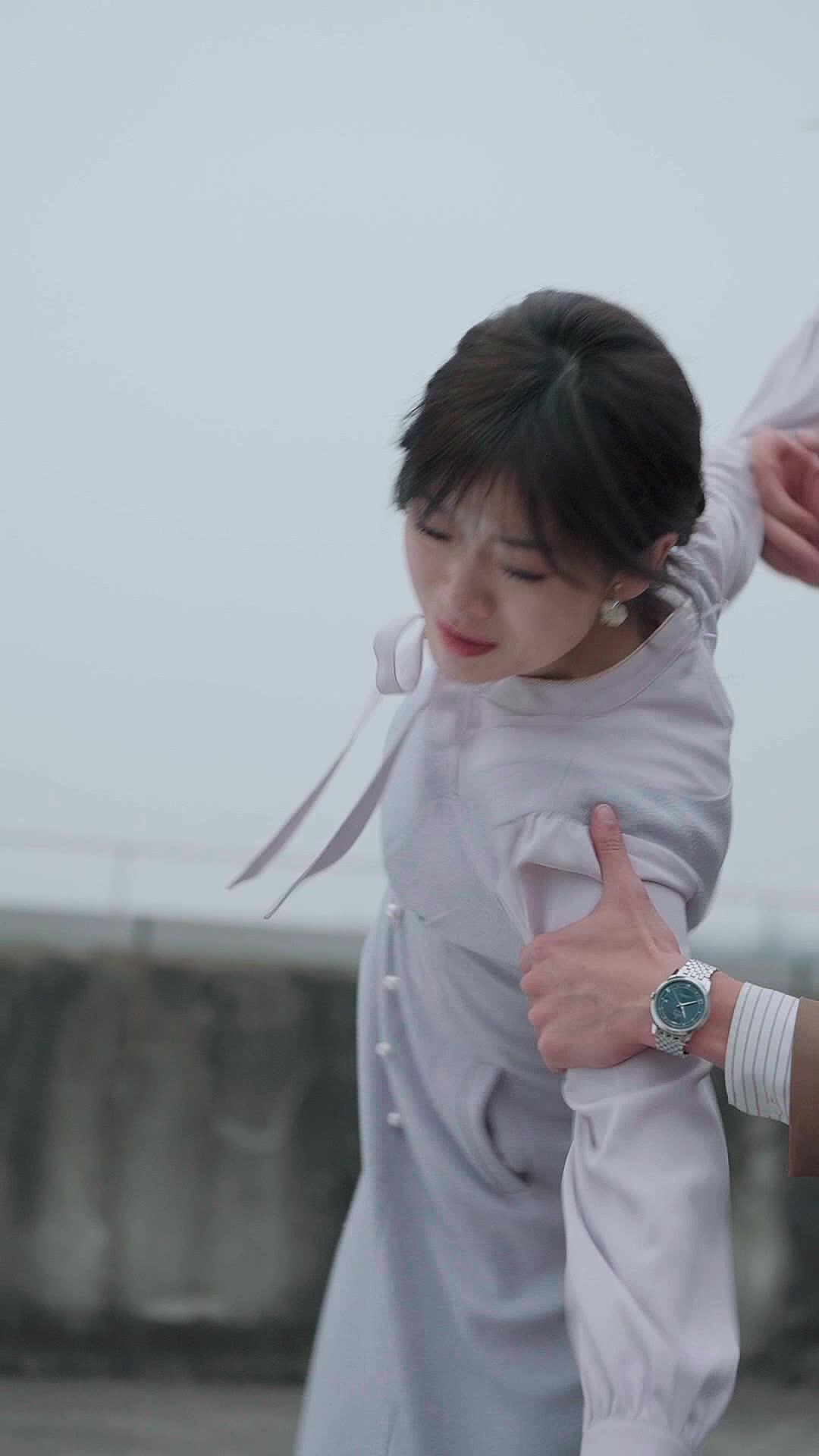 The camera lingers on Chen Wei’s face as he lies on the concrete, not dead, not even unconscious—just stunned, blinking up at the sky like he’s trying to remember how clouds work. His mouth opens, closes, opens again. No sound comes out, but his expression tells us everything: he expected pain, maybe even betrayal—but not *this*. Not the way Lin Xiao’s hand trembles not from hesitation, but from grief. She doesn’t want to hurt him. She wants him to *see* what he’s done. And Jian Yu? He’s whispering into her ear, words we can’t hear, but his lips move like a prayer. His grip tightens when she flinches—not at the knife, but at the memory it triggers. Because here’s the thing no one mentions in the trailers: the knife isn’t real. It’s a prop. A theatrical gesture. The real violence happened long before this rooftop, in quiet rooms and unspoken texts, in the way Jian Yu’s wristwatch catches the light every time he reaches for her, like he’s checking if time is still moving.