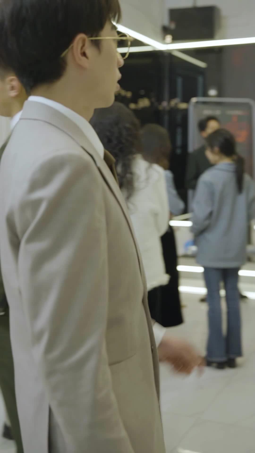 From the very first second of *The Radiant Road to Stardom*, the visual language whispers contradiction. A man—Lin Zeyu, impeccably dressed in beige wool, gold-rimmed glasses perched low on his nose—walks through a space that gleams with curated sophistication. Yet his attention is elsewhere: glued to his phone, fingers tapping with restless precision. The environment pulses with activity—guests mingling, staff adjusting displays—but he moves through it like a ghost in a gilded cage. His expression shifts subtly when another man, clad in black, leans in close, shielding his mouth with his hand. The gesture reads as urgent, confidential, possibly threatening. Lin Zeyu’s jaw tightens, just barely, and he exhales through his nose—a micro-expression that reveals more than any dialogue could. He is not surprised. He is bracing. This is not the debut of a rising star; it is the continuation of a high-stakes game he’s already deep into. The chandeliers above cast fractured reflections on polished surfaces, hinting at the theme that will unfold: nothing here is whole, nothing is as it appears.